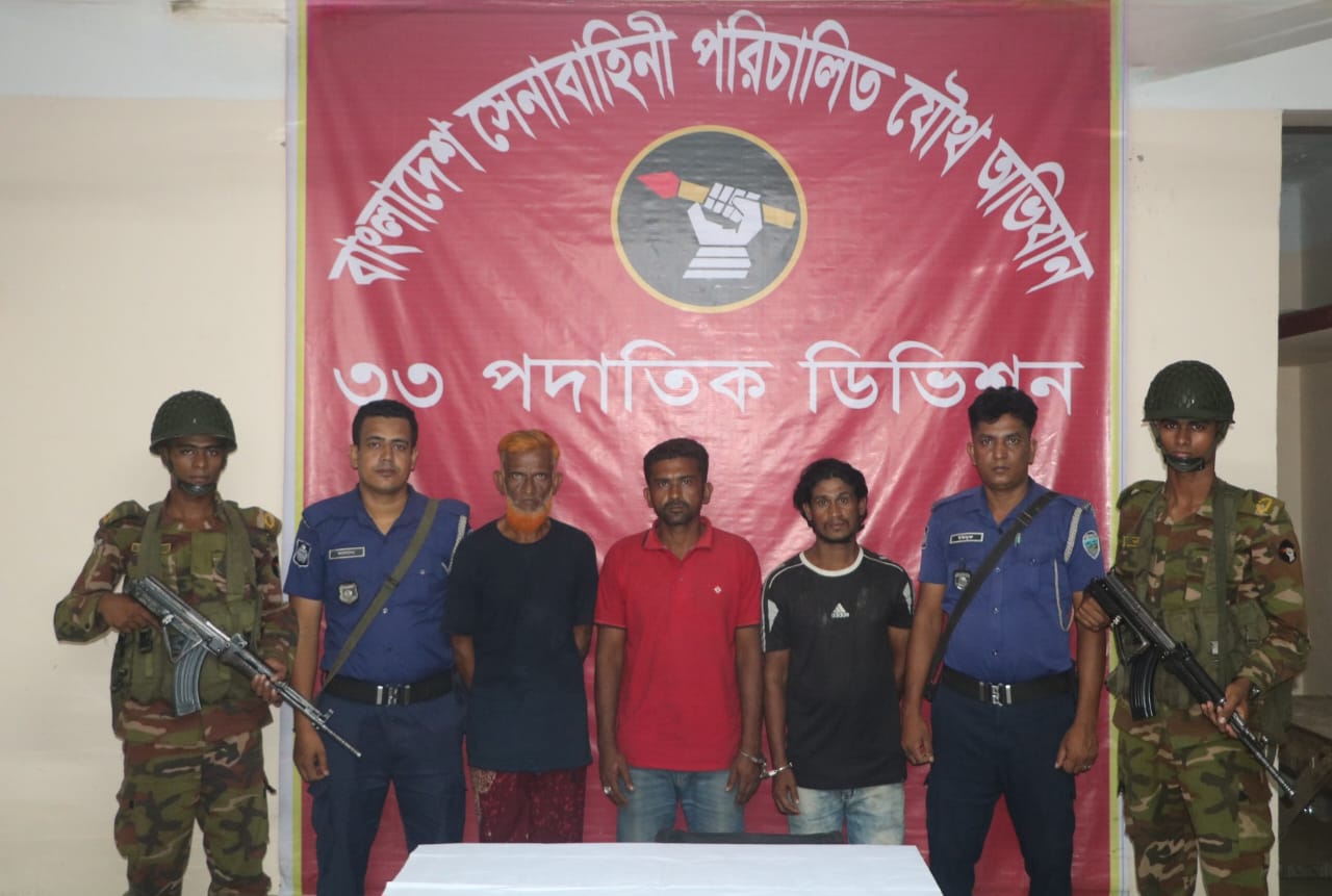 বাংলাদেশ সেনাবাহিনীর পরিচালিত যৌথ বাহিনী অভিযানে ব্রাহ্মণবাড়িয়া ৩ চাঁদাবাজ গ্রেফতার